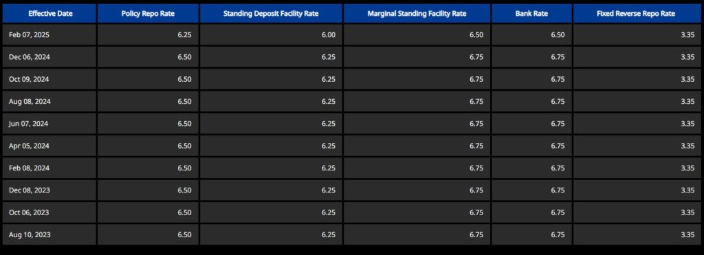 • Standing Deposit Facility Rate is reduced from 6.25% to 6.00%