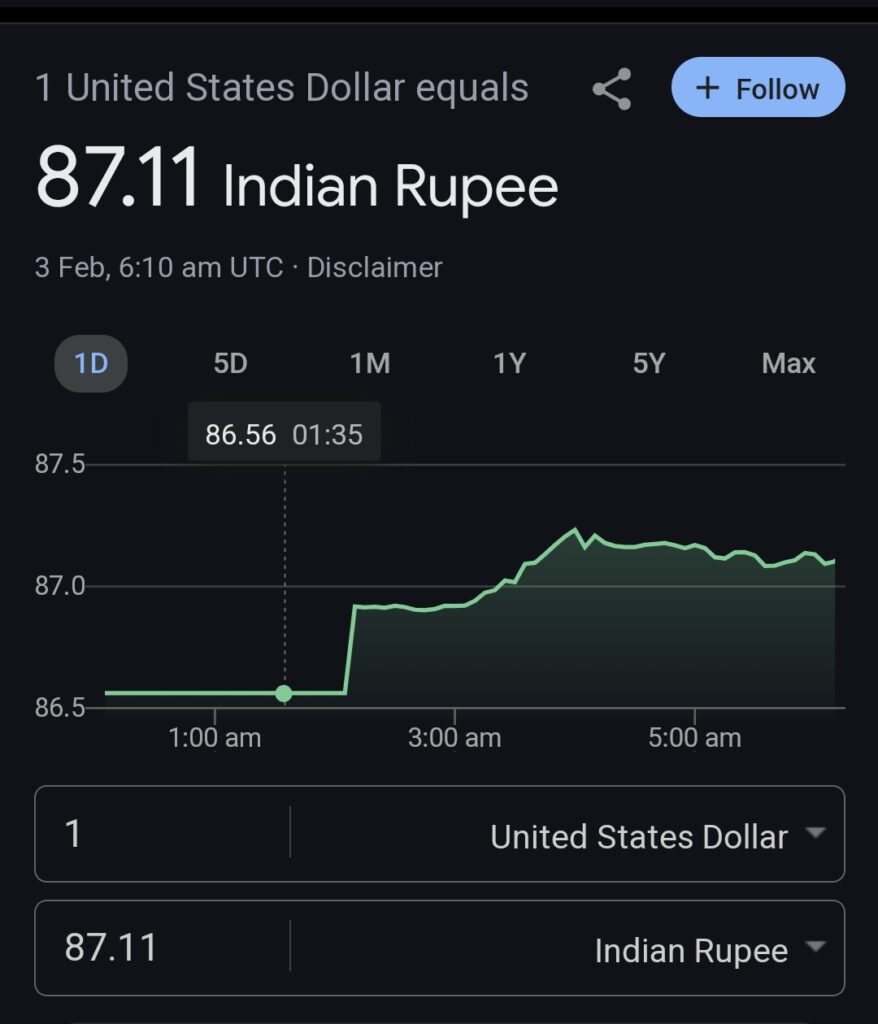 USD to INR Today:USD to INR has seen unusual spike today, and Rupee falls over 50 paise in value against USD on 03/02/2025.Tags:USD to INRLeave a Reply Cancel replyYour email address will not be published. Required fields are marked *Name * Email * Website Comment * Save my name, email, and website in this browser for the next time I comment.